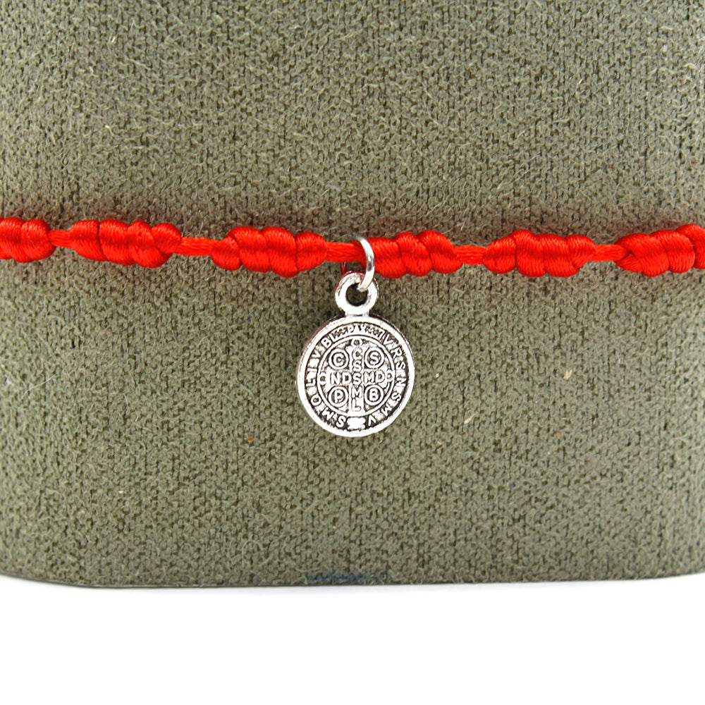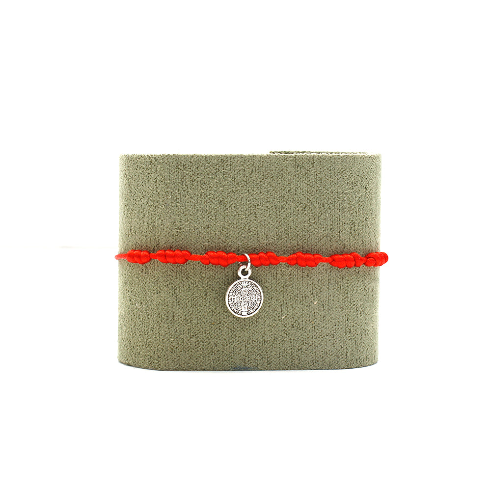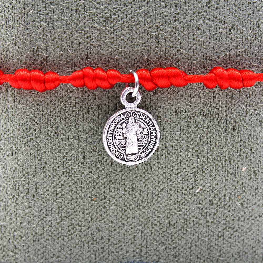 Esta pulsera de 7 nudos roja con amuleto de Cruz de San Benito es para la protección contra el mal de ojo y para favorecer la atracción de la buena suerte.