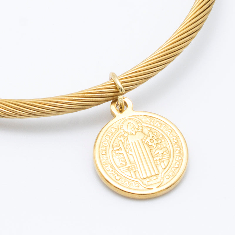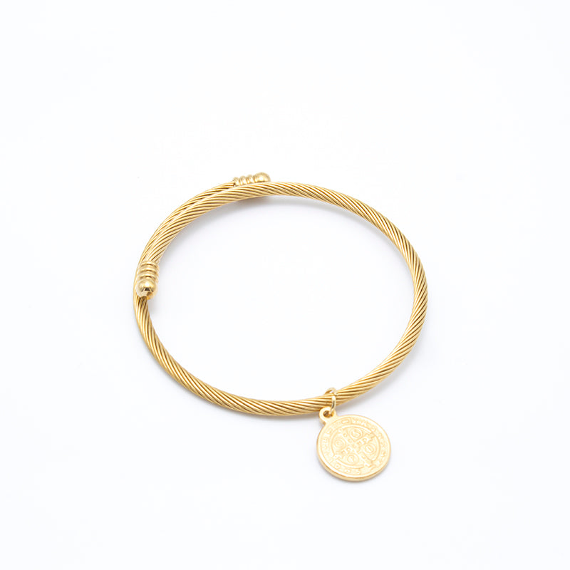 PULSERA CRUZ DE SAN BENITO EN ACERO INOX. DORADO