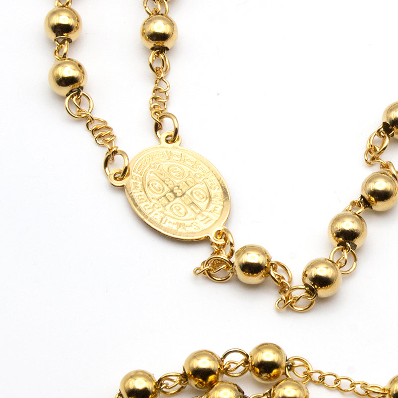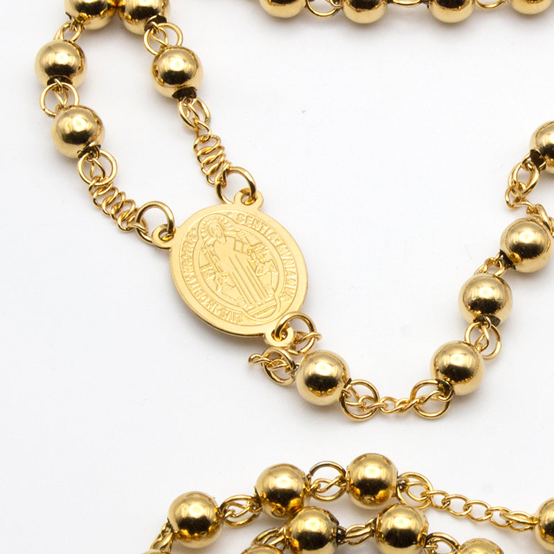 ROSARIO DORADO EN ACERO DORADO CON CRUZ DE SAN BENITO