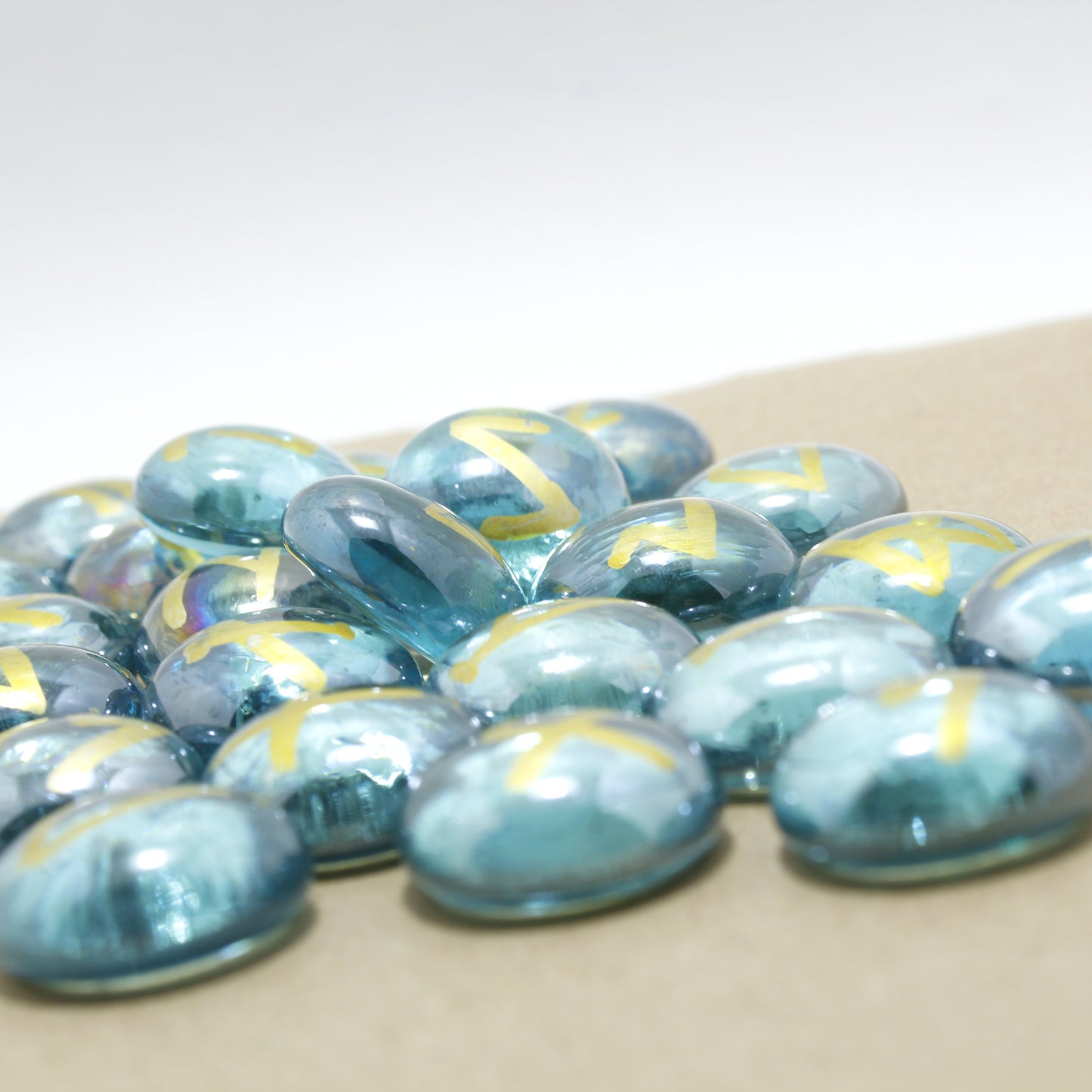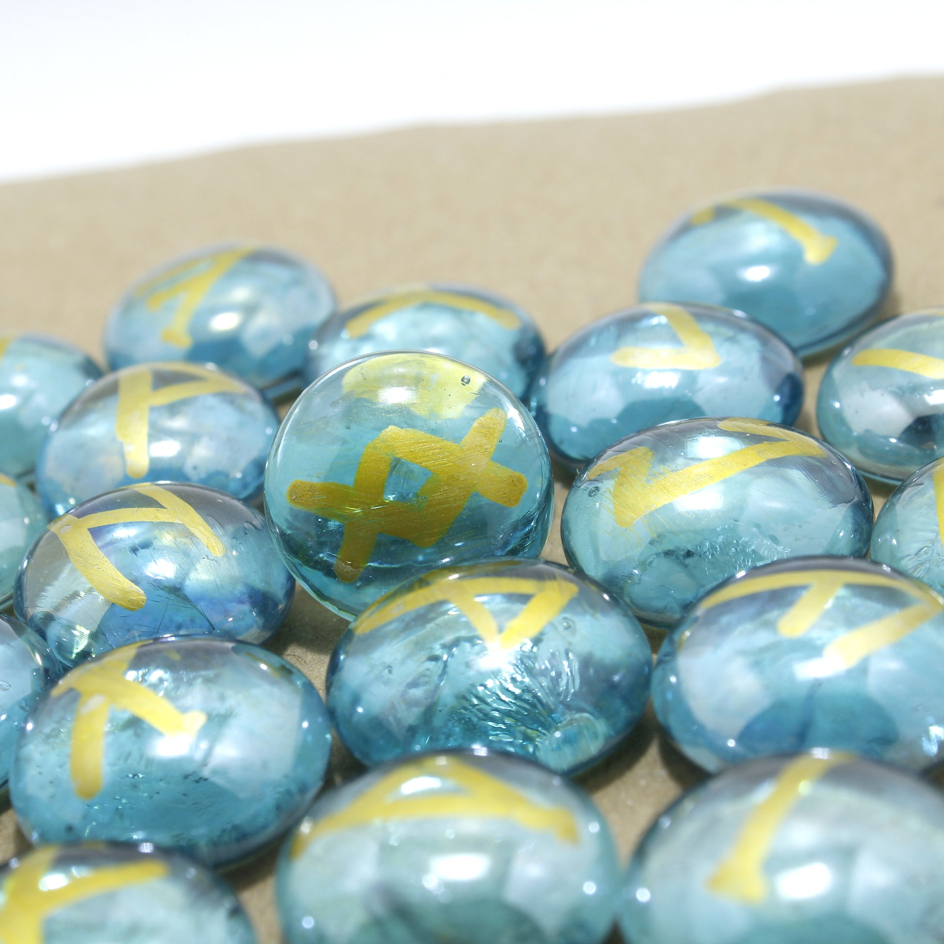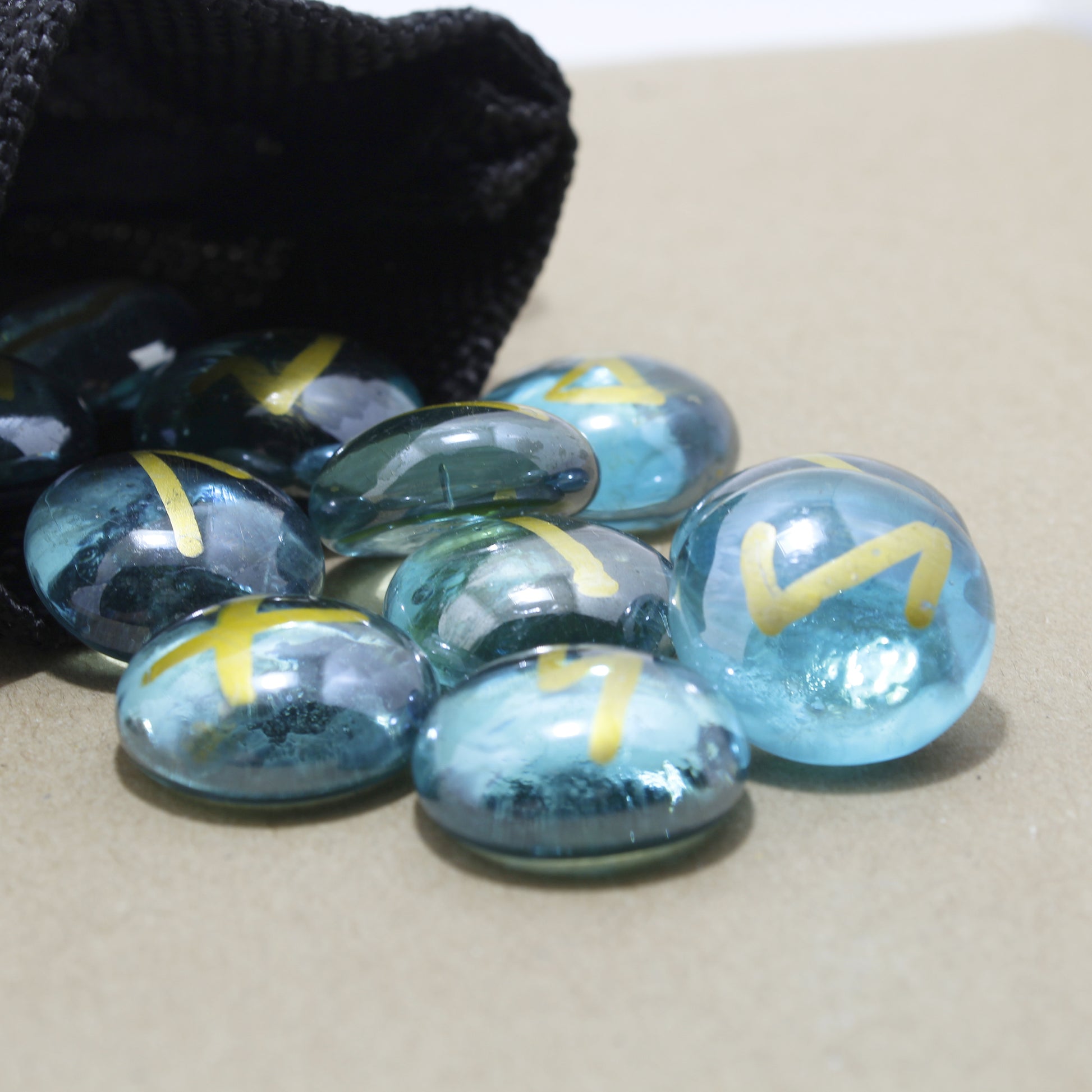 Las runas constan de 24 piezas con cada una de ellas con una epigrafía del alfabeto rúnico más la runa de Odín que esta es libre de epígrafe. Se cree que cada una de ellas son un ser espiritual que nos habla. La experiencia permitirá que nuestra sintonía con ellas sea cada vez mayor.