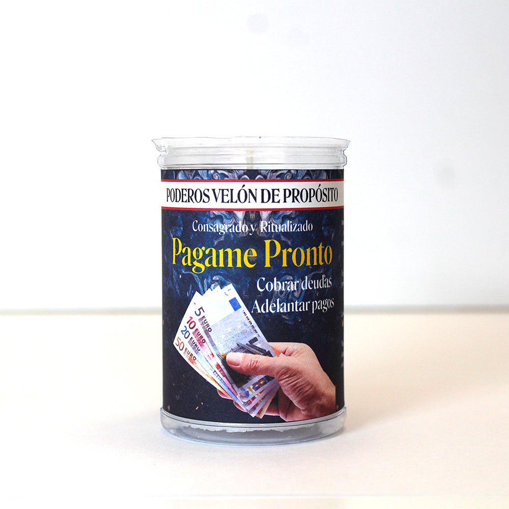 Velón Esotérico Págame Pronto, para lograr que te paguen lo antes posible tus deudas. Cobrarás el dinero que te deben y conseguirás acabar con ese problema.